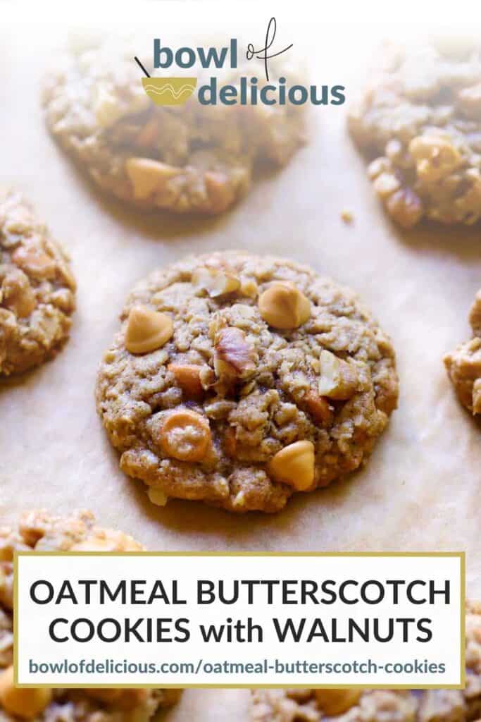 - Make ’em pretty: If you want, you can save some of the butterscotch chips and walnuts to place on top of the cookies before you bake them. This makes them pretty enough to photograph – a trick food bloggers often use so you can see the ingredients that are in the cookies clearly from the photos.